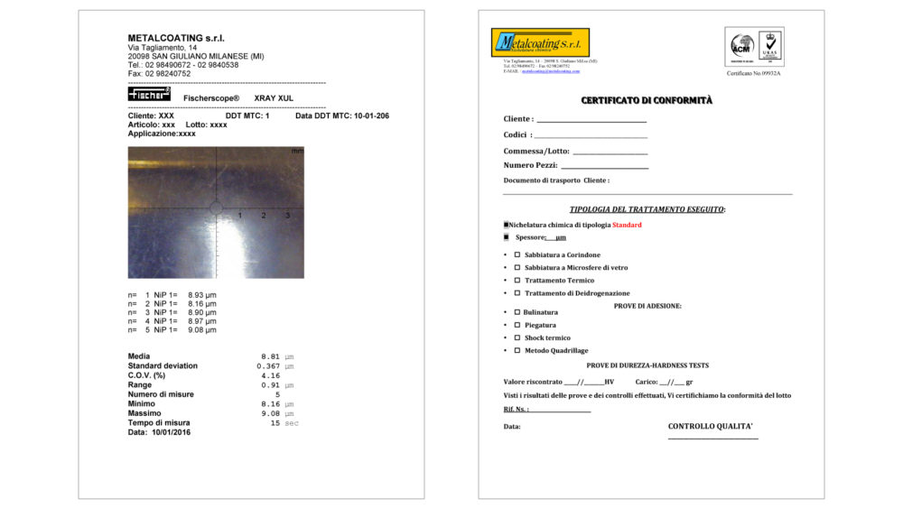 Il controllo di qualità è uno dei passaggi più importanti in quanto il personale dedicato valuta con cura se la lavorazione è stata eseguita rispettando tutte le richieste del cliente. Su specifica richiesta, vengono rilasciati dei certificati che validano, attraverso dati strumentali, le caratteristiche del deposito.